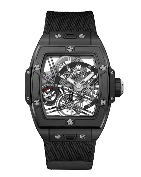 Более сдержанный, но не менее впечатляющий вариант – модель «Black Magic» из чёрной керамики с микроструйной обработкой и полировкой. Эта двойная отделка добавляет часам текстурную глубину: матовые поверхности поглощают свет, а полированные грани отражают его. В результате получается монохромное изделие, играющее светом и тенью. Тёмный корпус создаёт эффектное обрамление для скелетонированного механизма, благодаря чему металлические шестерни, мосты и вращающаяся каретка турбийона выделяются с исключительной чёткостью. Это самая универсальная модель из керамического квартета, предлагающая сдержанную эстетику, которая, тем не менее, демонстрирует механическую сложность часов.