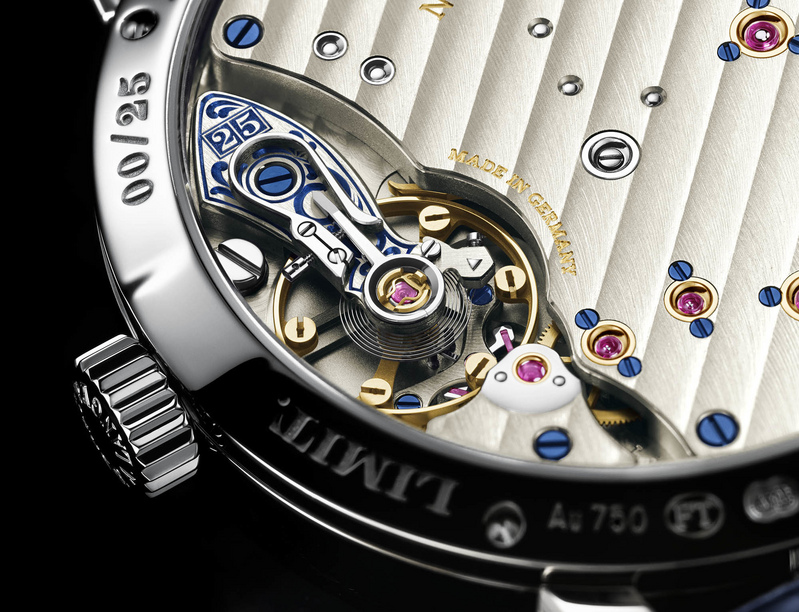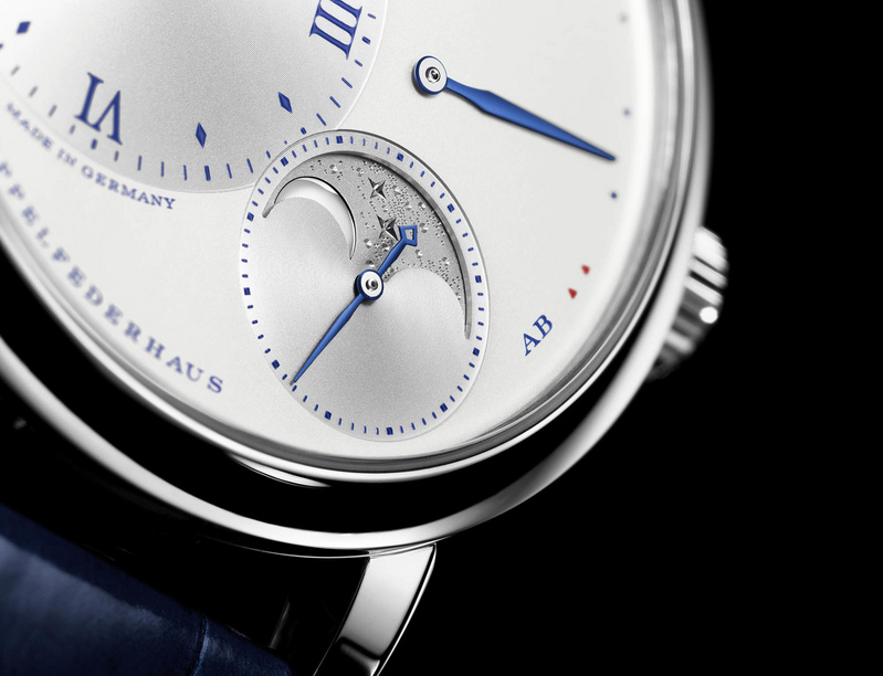 Лунный диск с ручной гравировкой из белого золота отличает LITTLE LANGE 1 MOON PHASE - представленную по случаю 25-летия LANGE 1 - от стандартной версии. Он имеет диаметр 36,8 миллиметра и дебютирует ограниченной серией всего в 25 часов.