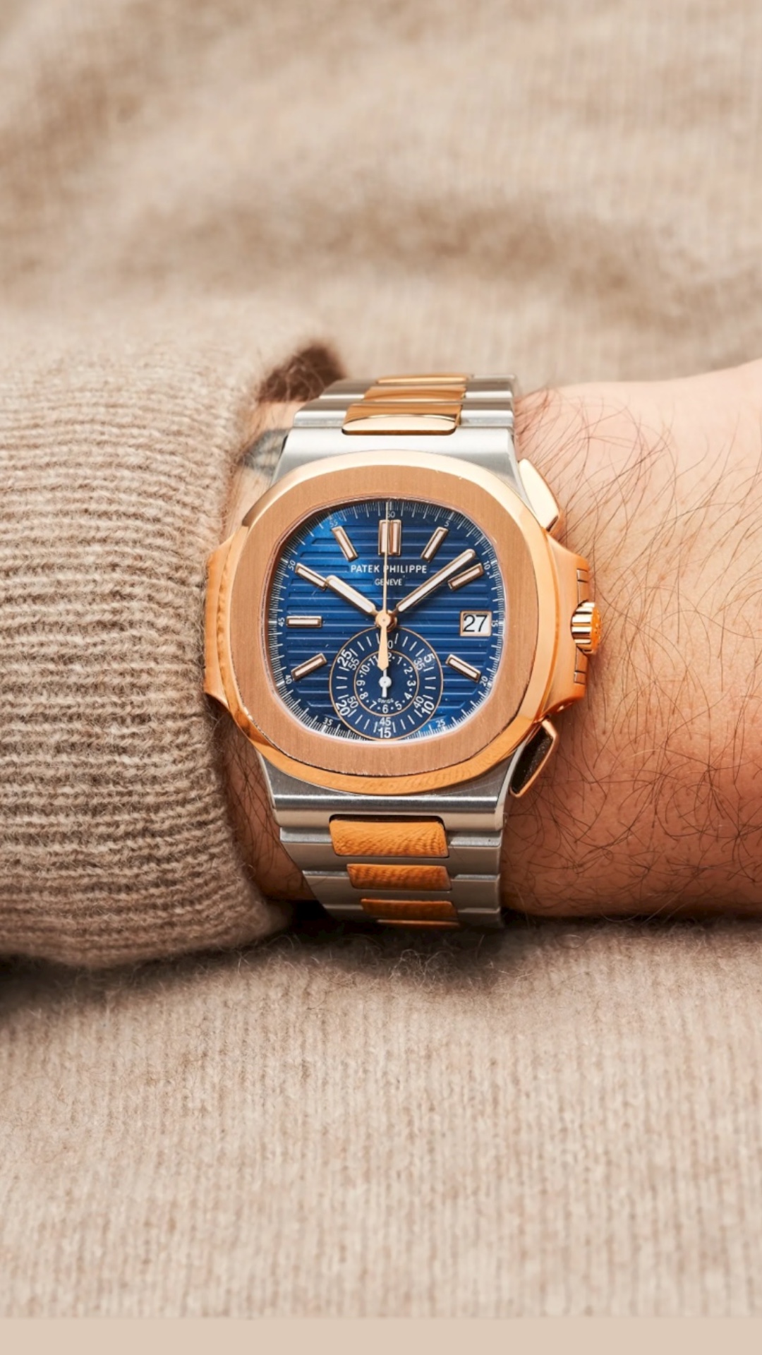 Patek Philippe Nautilus Chronograph Réf. 5980/1AR-001 в таком исполнении увидел мир впервые в 2013 году, на сегодняшний день, модель снята с производства и стала обьектом охоты любителей и коллекционеров.