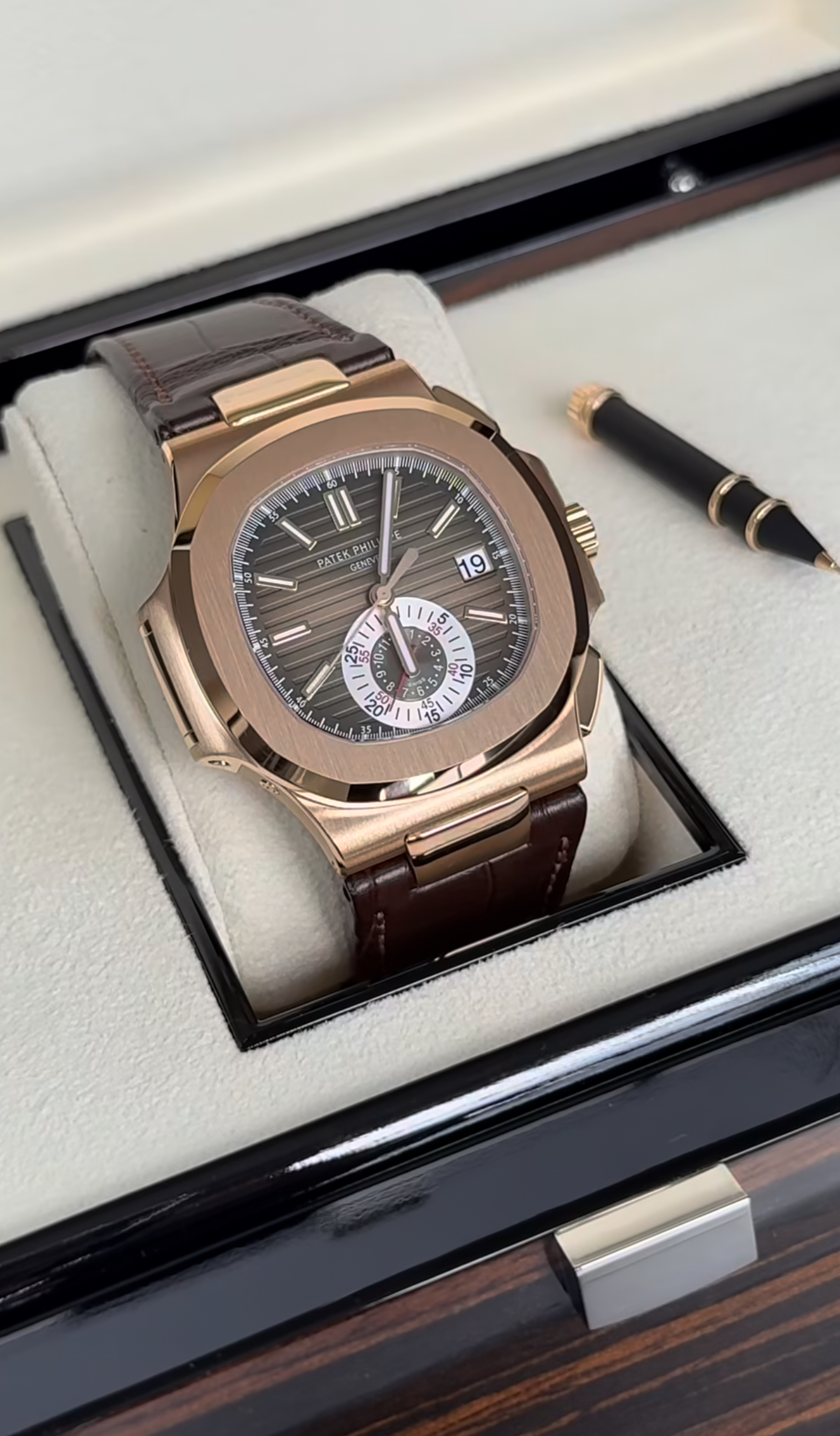 Эти часы, являются предметом охоты коллекционеров и любителей бренда, так как хронограф в розовом золоте з шоколадным цветом циферблата на ремне уже сняты с производства, но абсолютно не теряют актуальности и красоты.