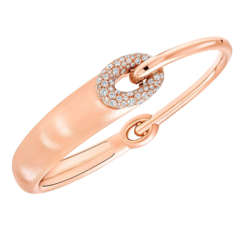 Выразительный браслет Be Together из розового золота воплощает идею гармонии и вечной связи. Его плавная линия из отполированного металла постепенно переходит в мягко матовую поверхность, создавая утончённый градиент света и текстуры. Центральный акцент — овальное звено, инкрустированное бриллиантами паве, которое соединяет композицию, символизируя нерушимую связь и единство.