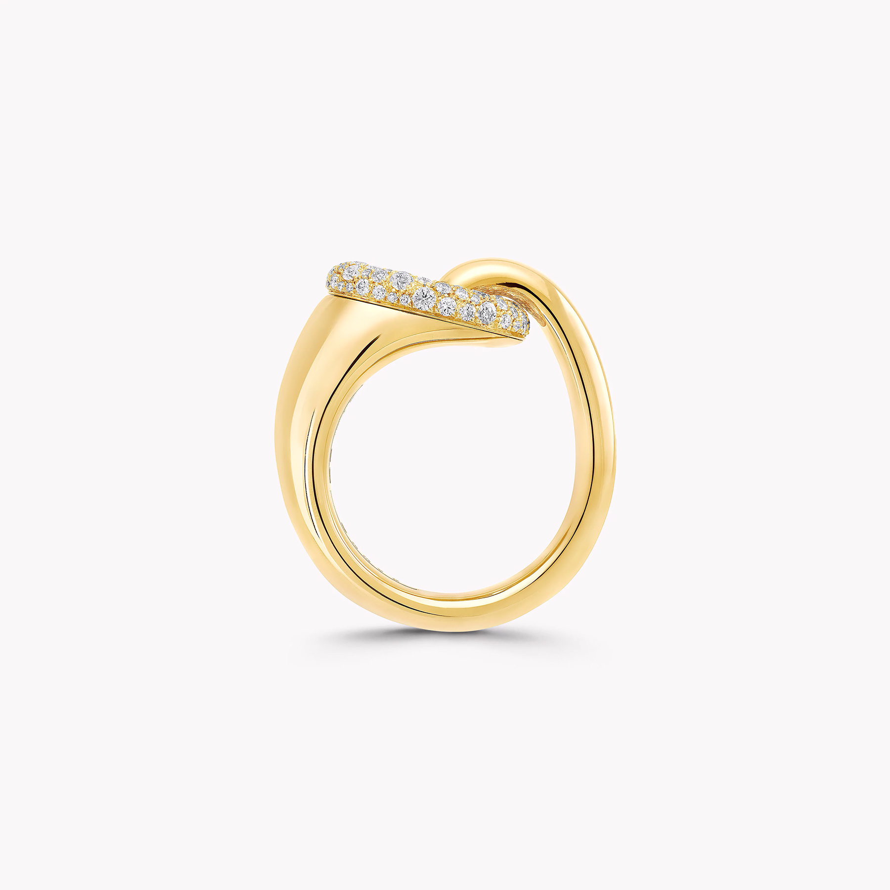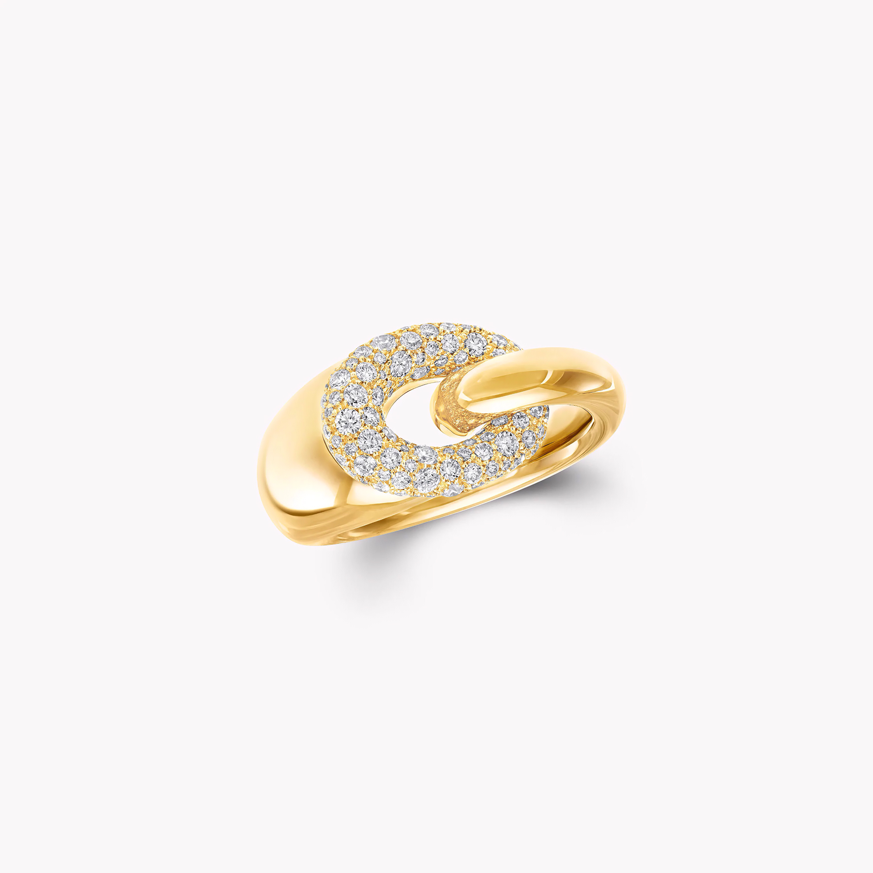 Изящное и утончённое кольцо Be Together из жёлтого золота создано для тех, кто ценит элегантность в каждом движении. Его отполированная до зеркального блеска лента мягко обвивает палец, переходя в овальное звено, украшенное россыпью бриллиантов паве огранки. Искусная работа мастеров Graff делает кольцо одновременно лёгким и выразительным, подчёркивая игру света на каждой грани.
