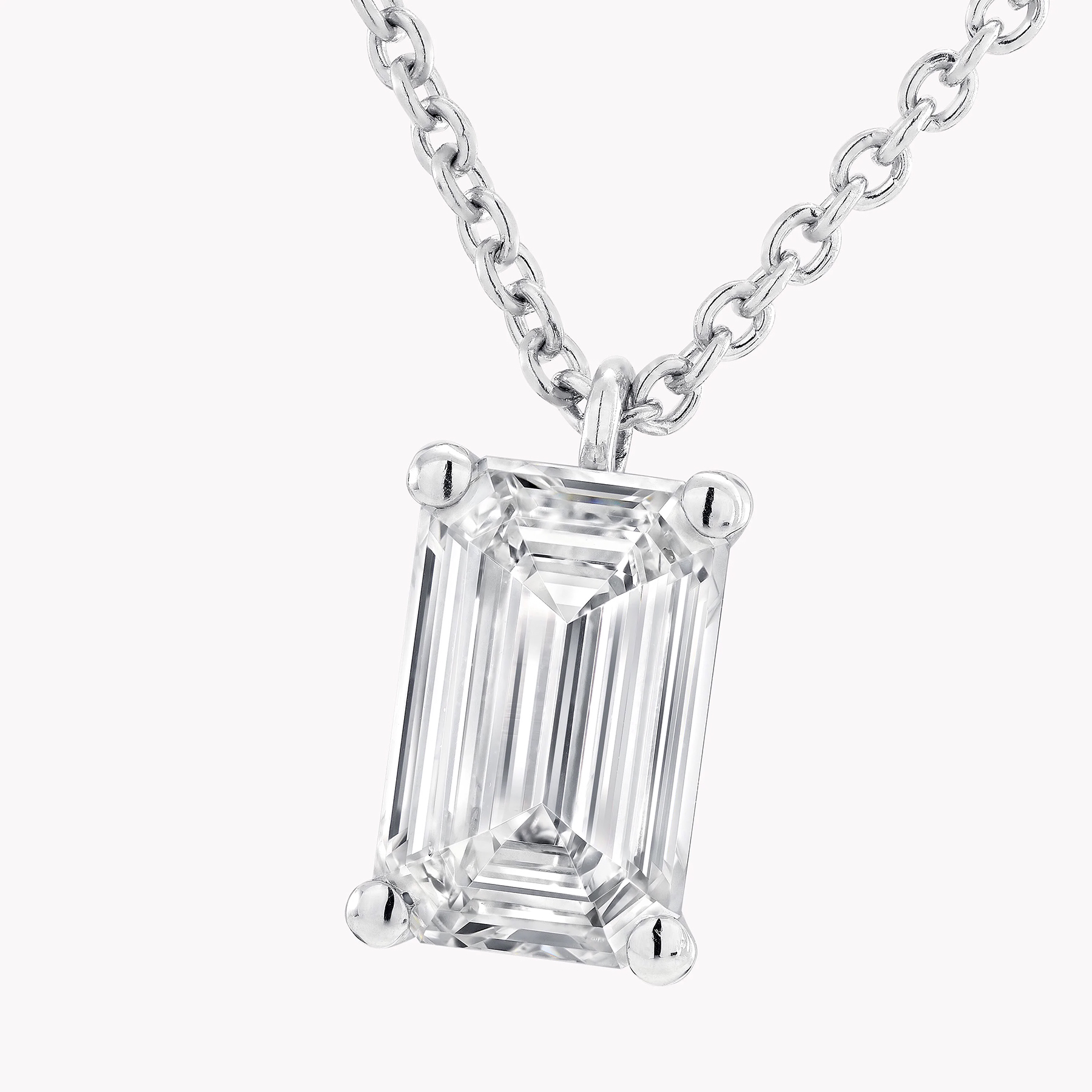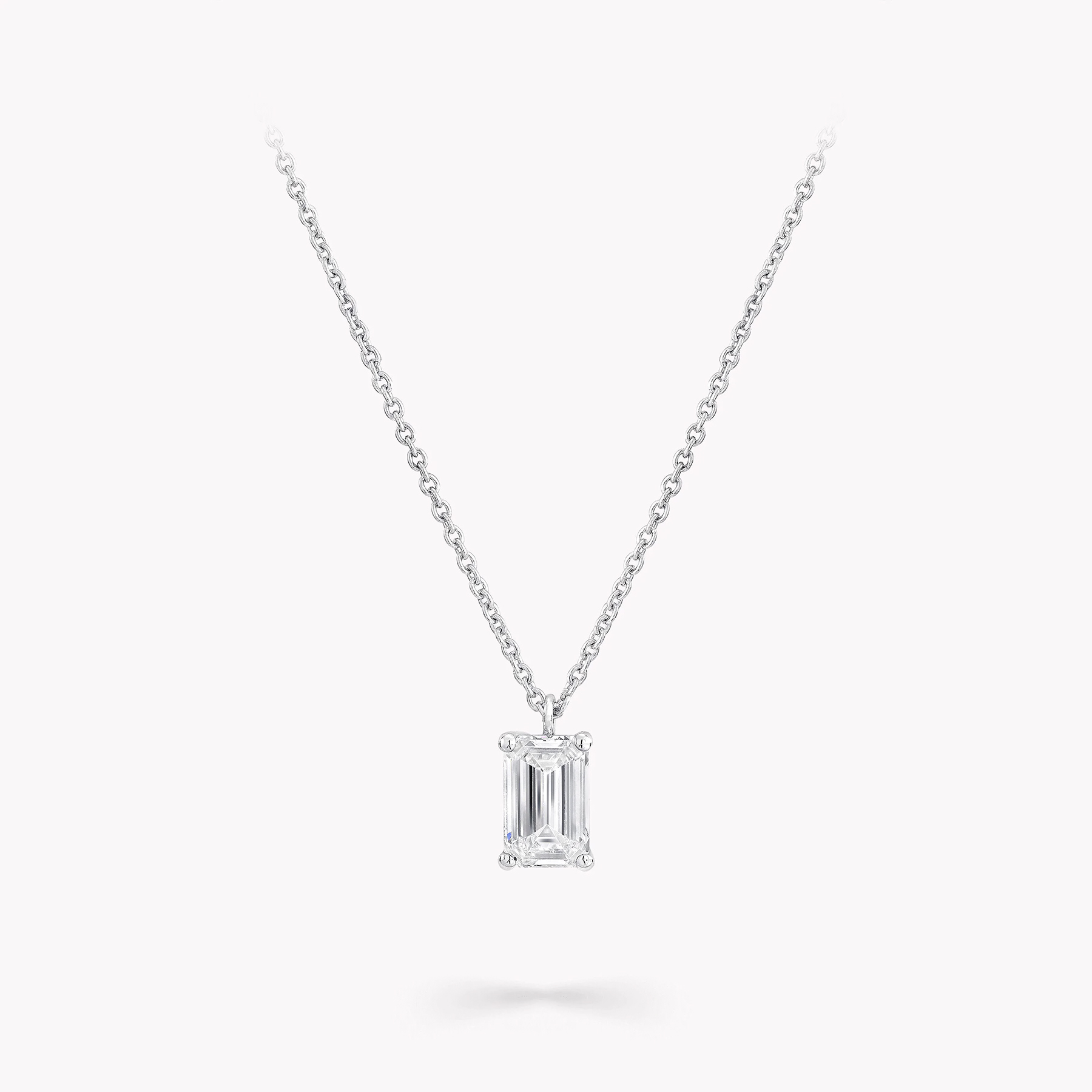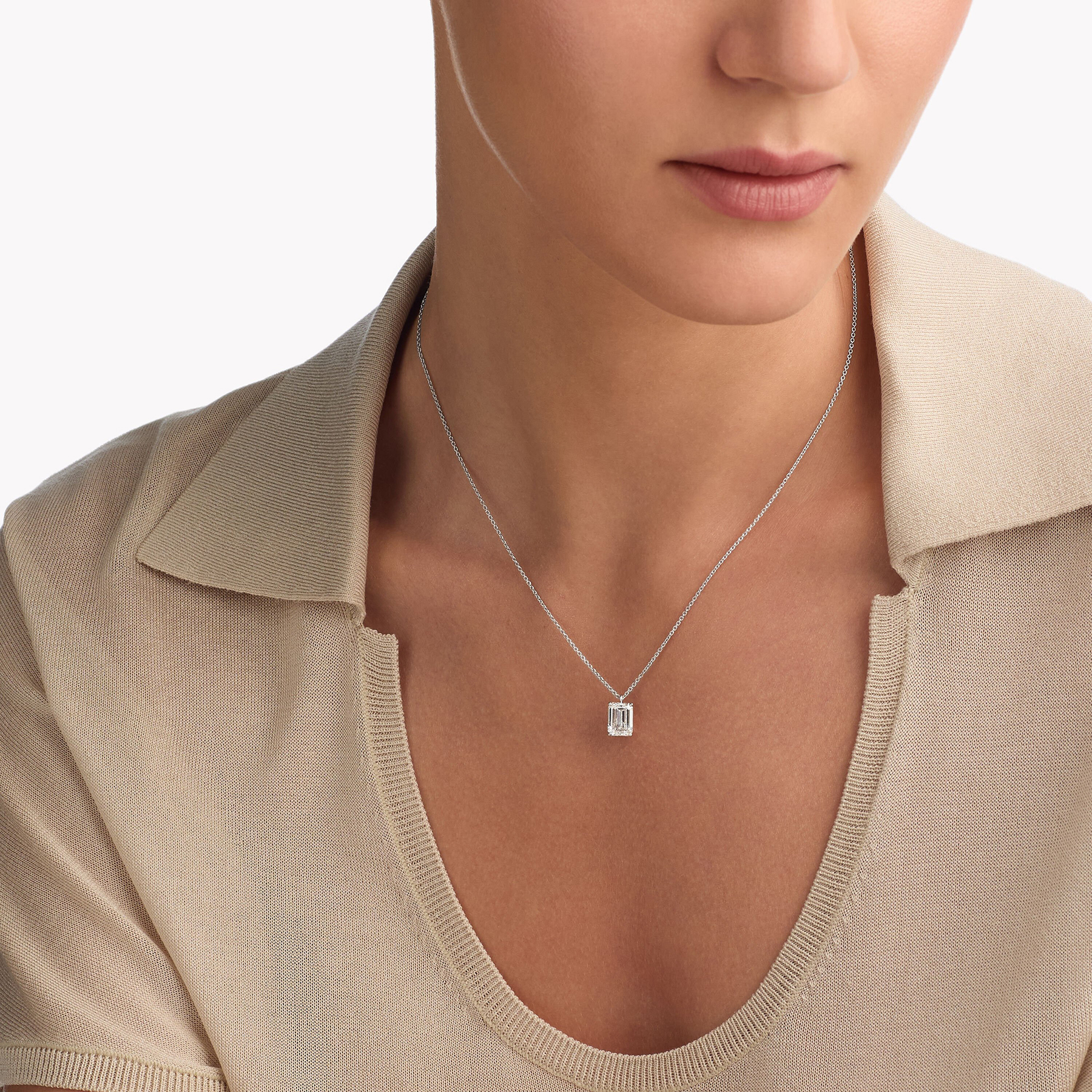 Огранка «изумруд» подчёркивает чистоту бриллианта, превращая его в завораживающее украшение, наполненное светом и сиянием. Подвешенный на изящную цепочку из белого золота, камень раскрывает всю глубину своей природной красоты — каждая грань тщательно вырезана вручную и пропитана мастерством и страстью ювелиров Graff.