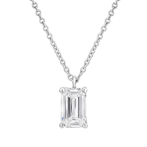 Изысканный кулон с бриллиантом изумрудной огранки общим весом около 1,00 карата — воплощение безупречного вкуса, гармонии и классической красоты.
