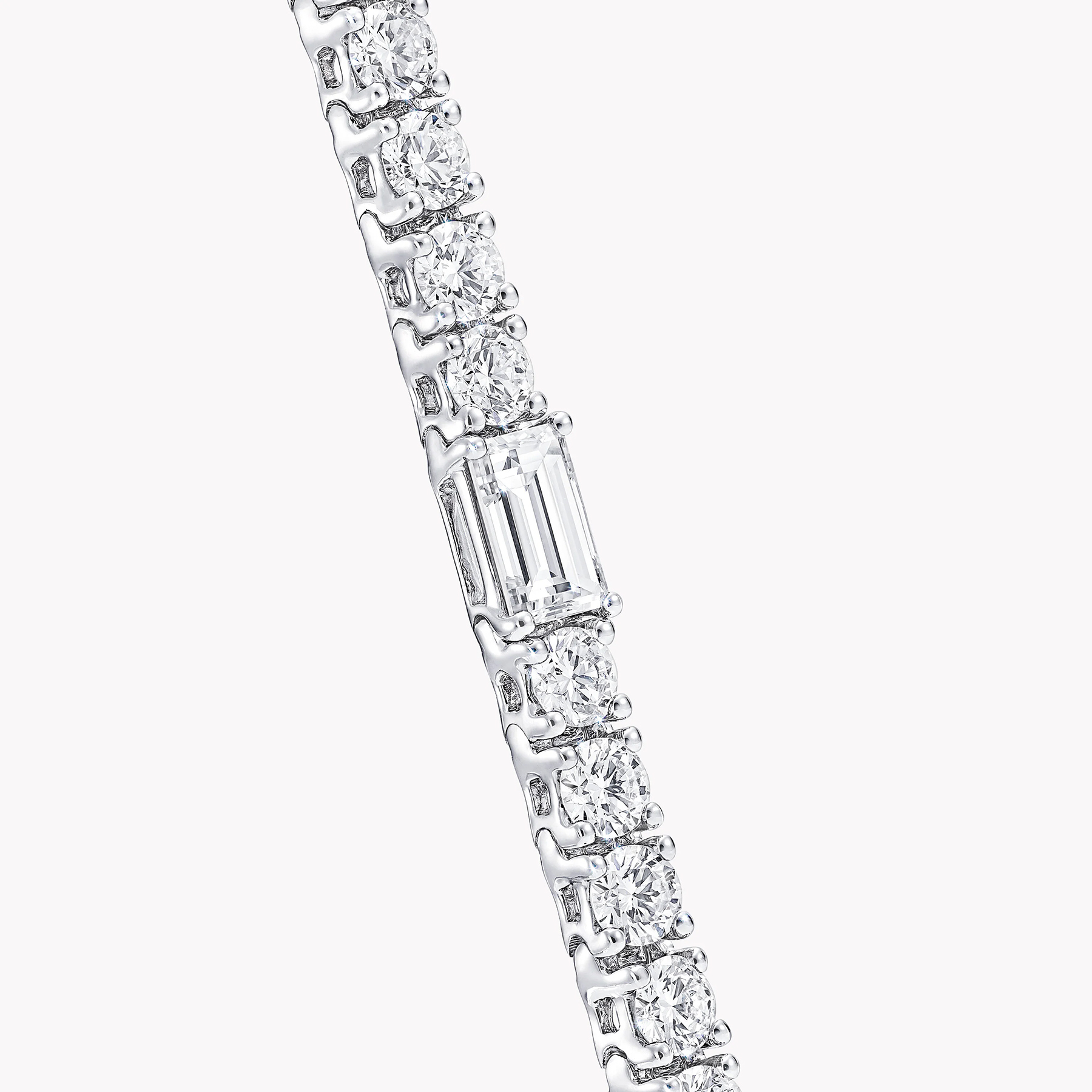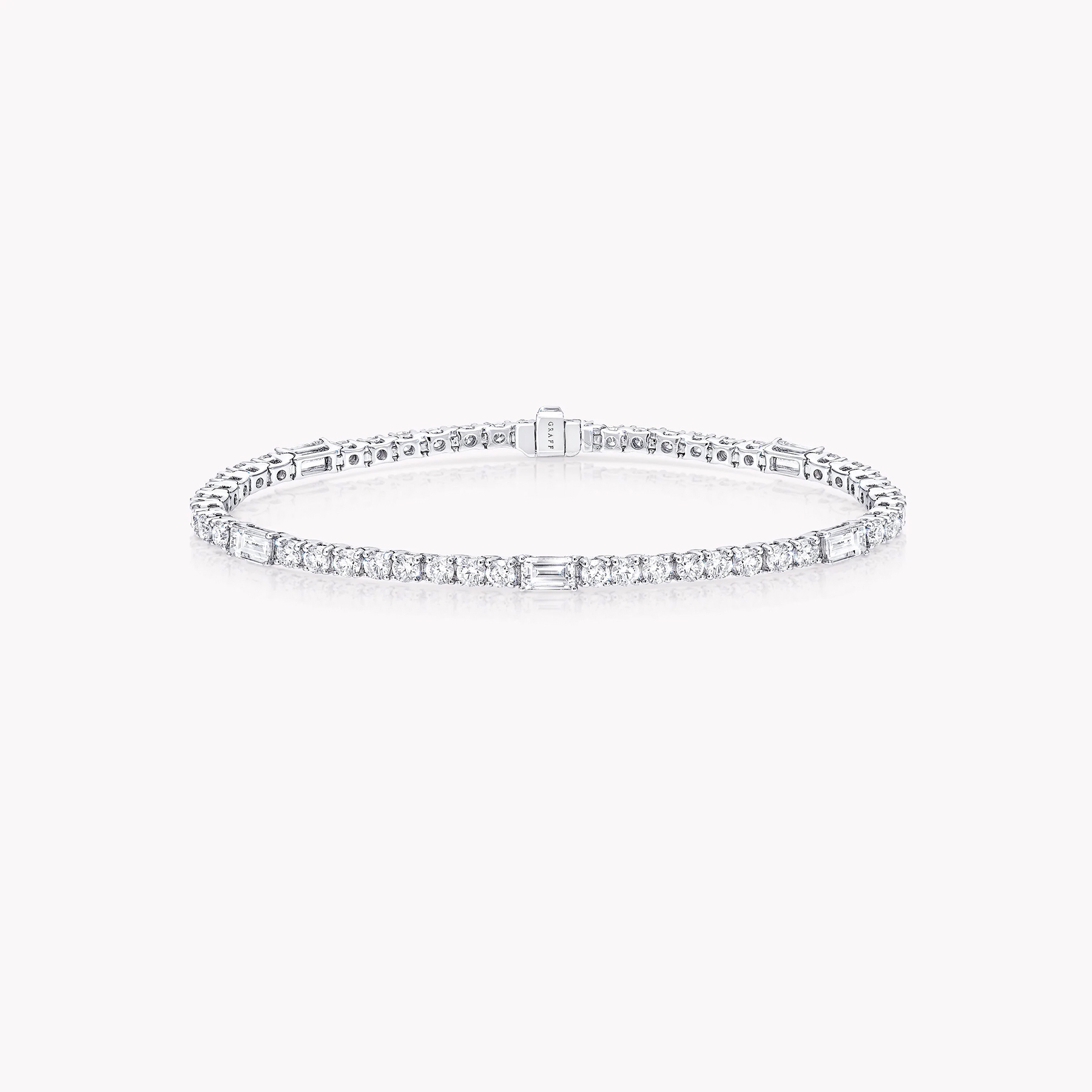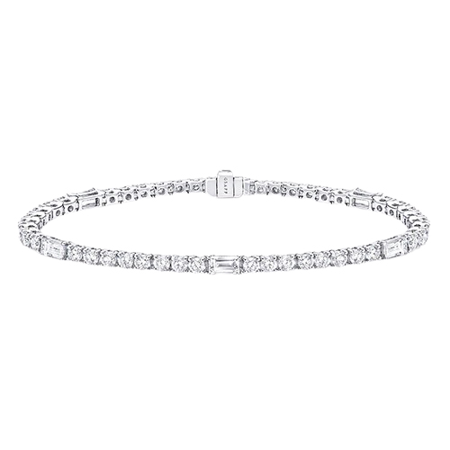 Современная интерпретация классического бриллиантового теннисного браслета — изящное сочетание круглых и изумрудных огранок в дизайне Graff Classic из белого золота. Каждое звено идеально выверено и соединено, образуя гибкую ленту света, которая мягко переливается при каждом движении. Минималистичное крепление подчёркивает чистоту линий и безупречное сияние камней, делая браслет одинаково уместным как днём, так и вечером.