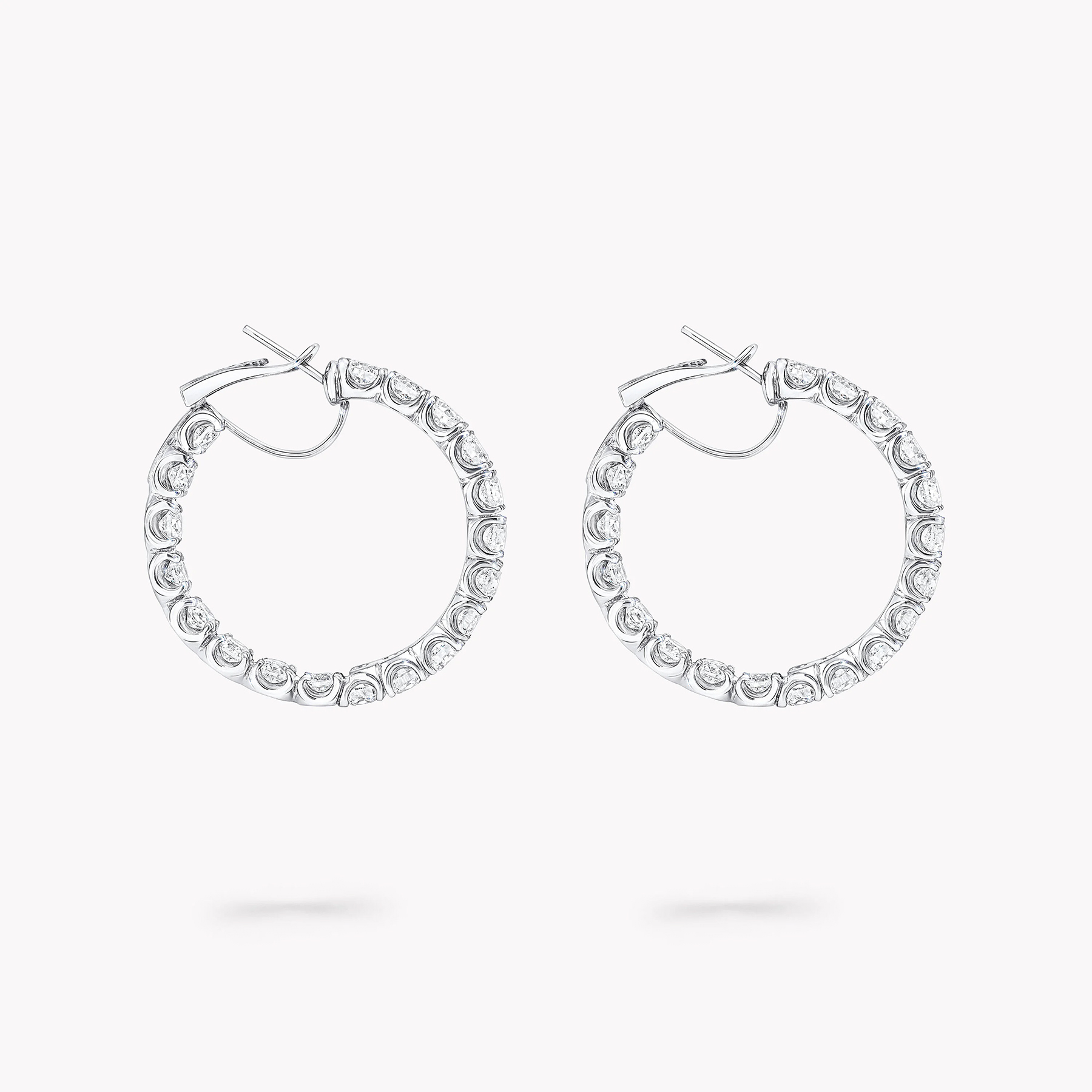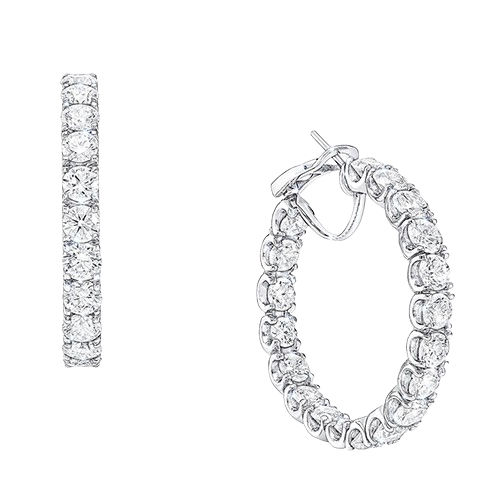 Общая масса бриллиантов — около 12,00 каратов. Пара утончённых серёг-кольц Classic Graff с круглыми бриллиантами — символ безупречной элегантности и вечного блеска.