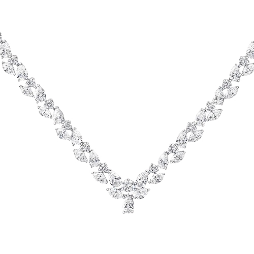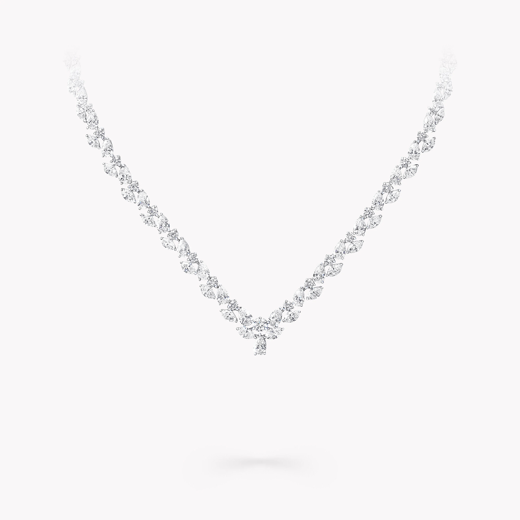 Завораживающее ожерелье Classic Graff демонстрирует безупречную красоту бриллиантов грушевидной, маркизной и круглой огранки. Камни заключены в минималистичное оправление из белого металла, что позволяет их природному сиянию свободно рассеиваться и играть на свету. Каждая грань отражает исключительное мастерство и внимание к деталям, характерные для Дома Graff.