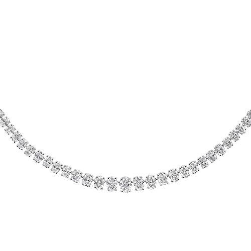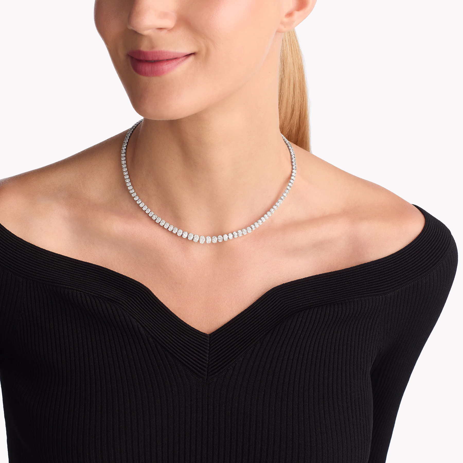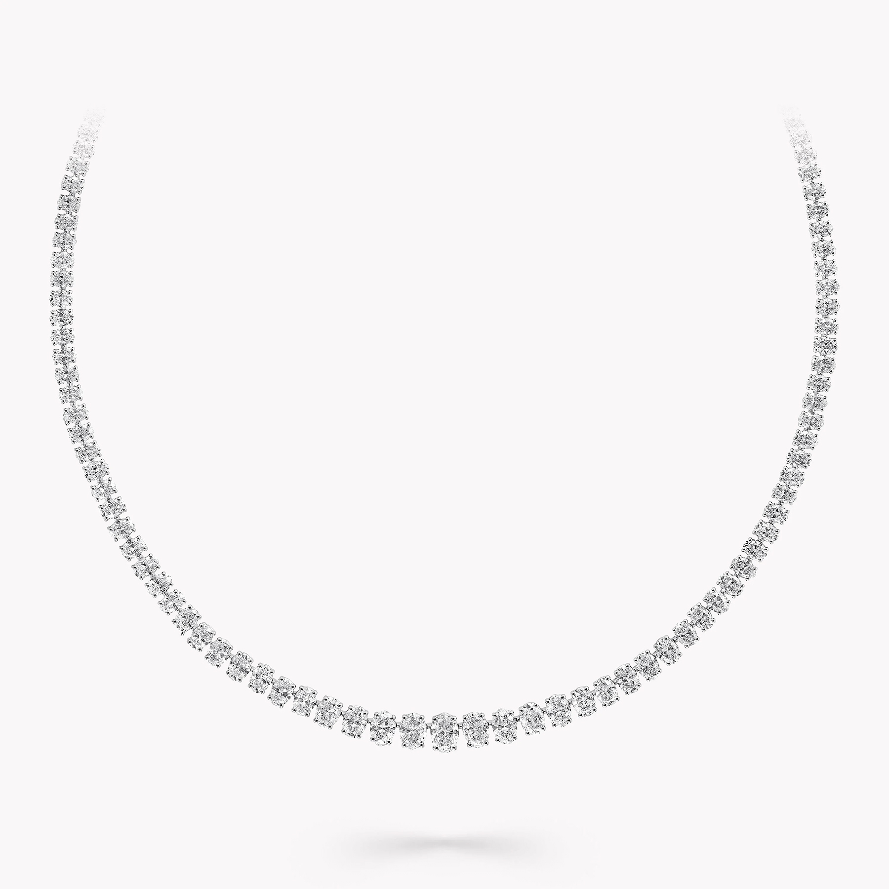 Изящное колье Classic Graff из белого золота воплощает утончённую элегантность. Ряд градуированных овальных бриллиантов мягко очерчивает линию декольте, наполняя образ тонким сиянием и гармонией пропорций. Универсальный и изысканный дизайн делает украшение идеальным выбором как для дневного, так и для вечернего выхода.