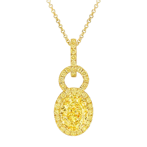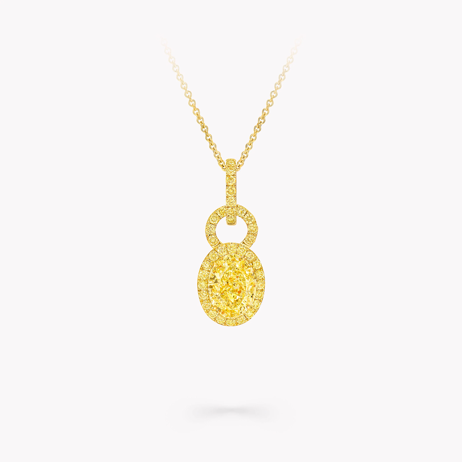 Подвеска Icon 8 с бриллиантом фантазийного жёлтого цвета огранки «овал» и бриллиантами паве общей массой около 1,42 карата — воплощение утончённой элегантности, излучающей свет и гармонию.