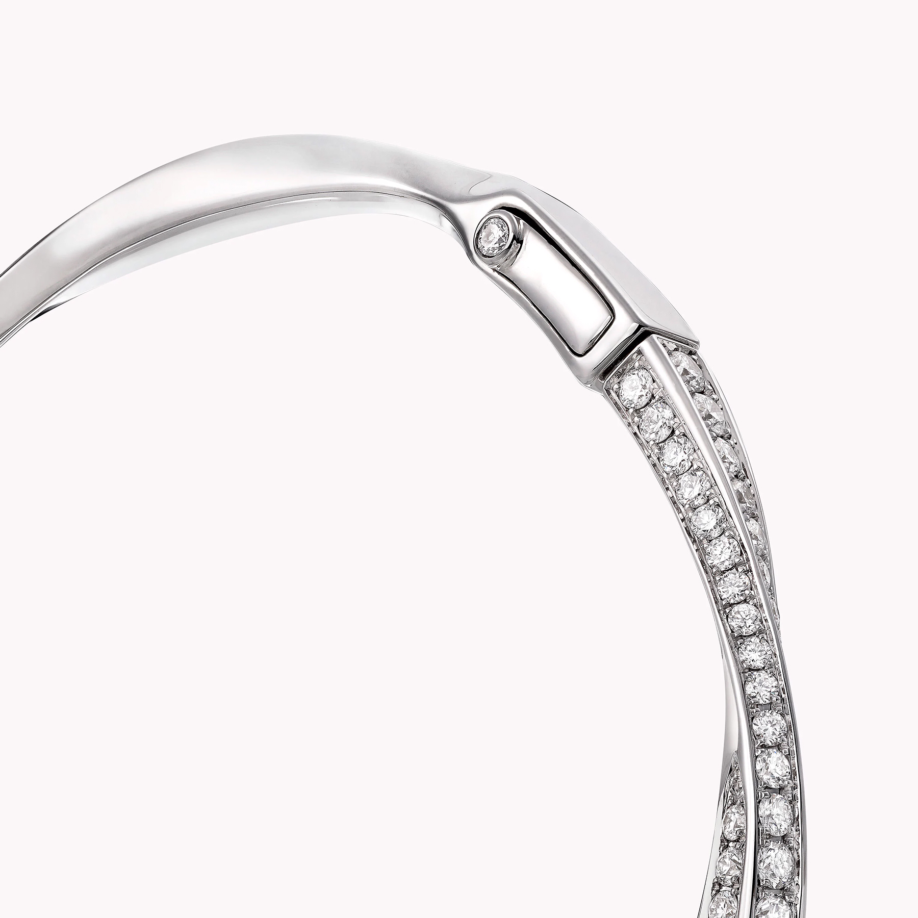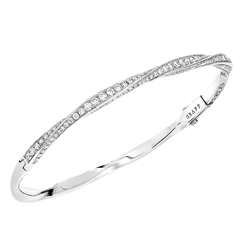 Очаровательный браслет Spiral из белого золота с бриллиантами общим весом около 1,60 карата — это воплощение утончённости, символ бесконечного движения и неподвластного времени блеска Graff.
