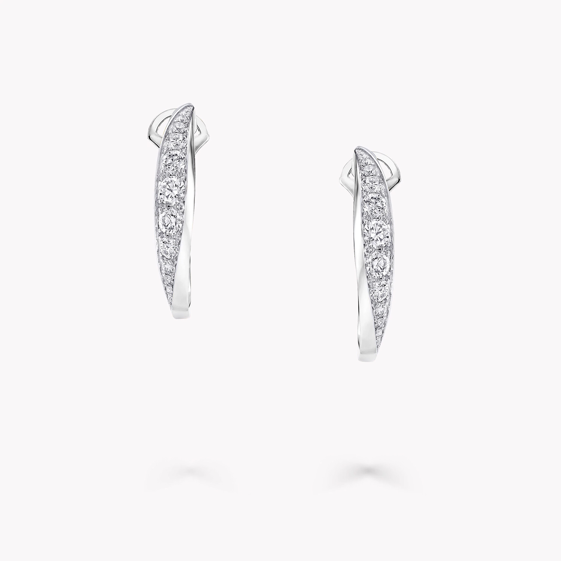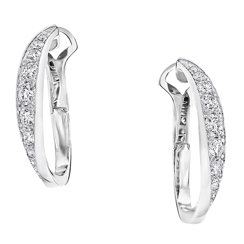 Пара элегантных серёг Spiral из белого золота олицетворяет гармонию света и движения. Одна изящная линия бриллиантов круглой огранки паве, плавно увеличиваясь в размере, обрамлена в утончённую оправу, изгибающуюся с мягкой грацией. Контраст между сиянием камней и холодным блеском белого золота придаёт украшению выразительный и современный характер.