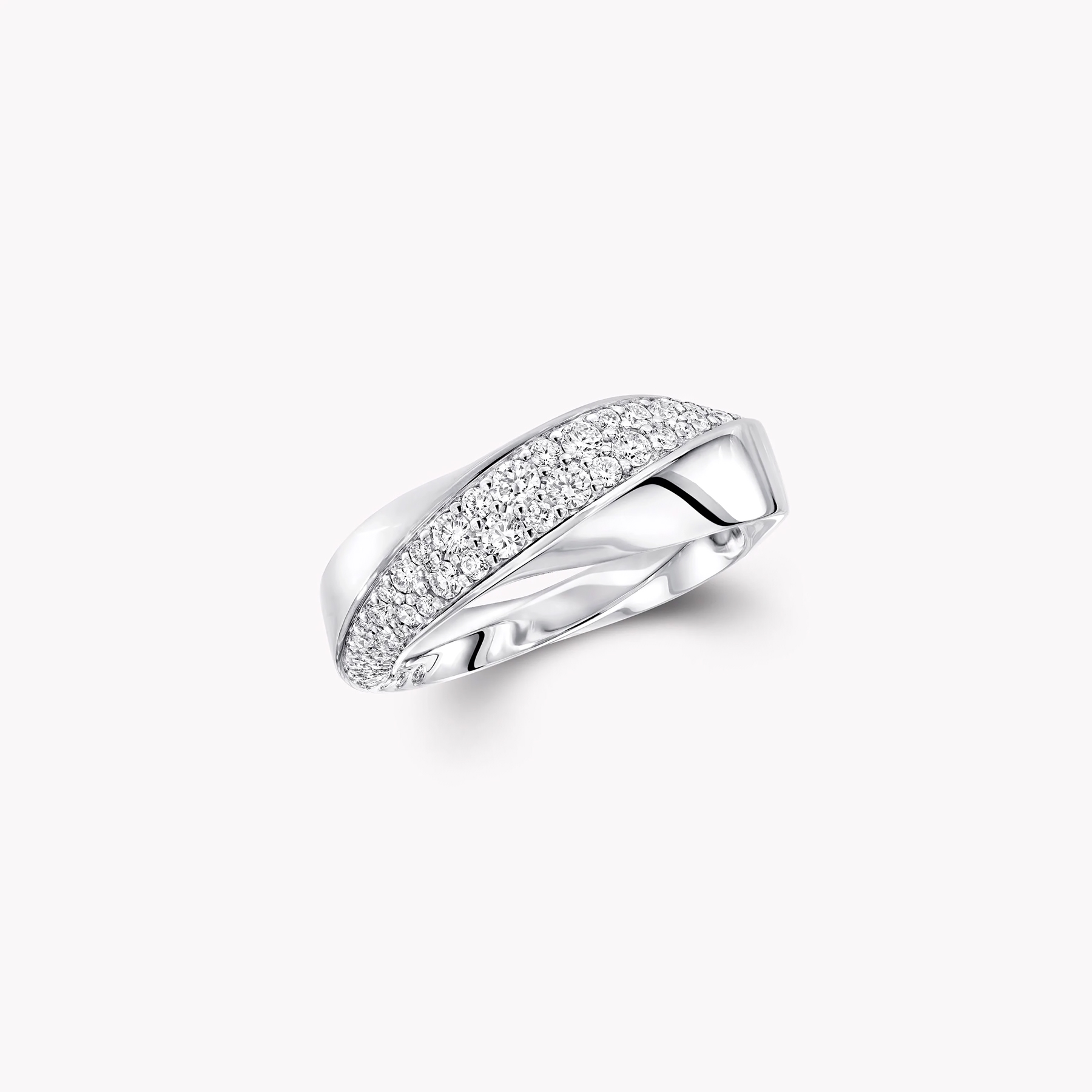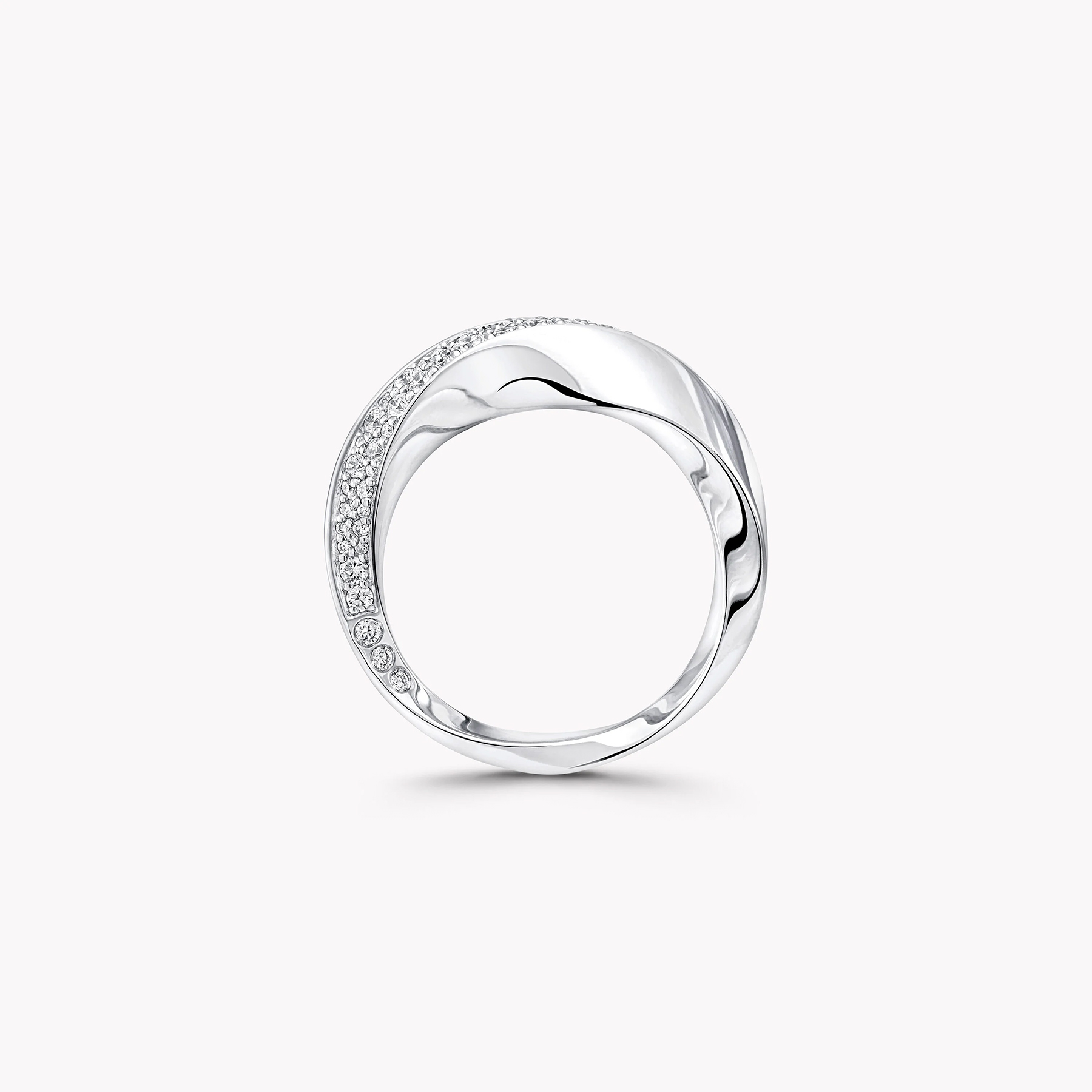 Символ вечности и бесконечного движения, кольцо Spiral из белого золота изящно закручивается вокруг пальца, создавая плавную спираль света и сияния. Каждое звено инкрустировано бриллиантами круглой огранки паве, мастерски закреплёнными ювелирами Graff, чтобы сформировать непрерывный круг ослепительного блеска.