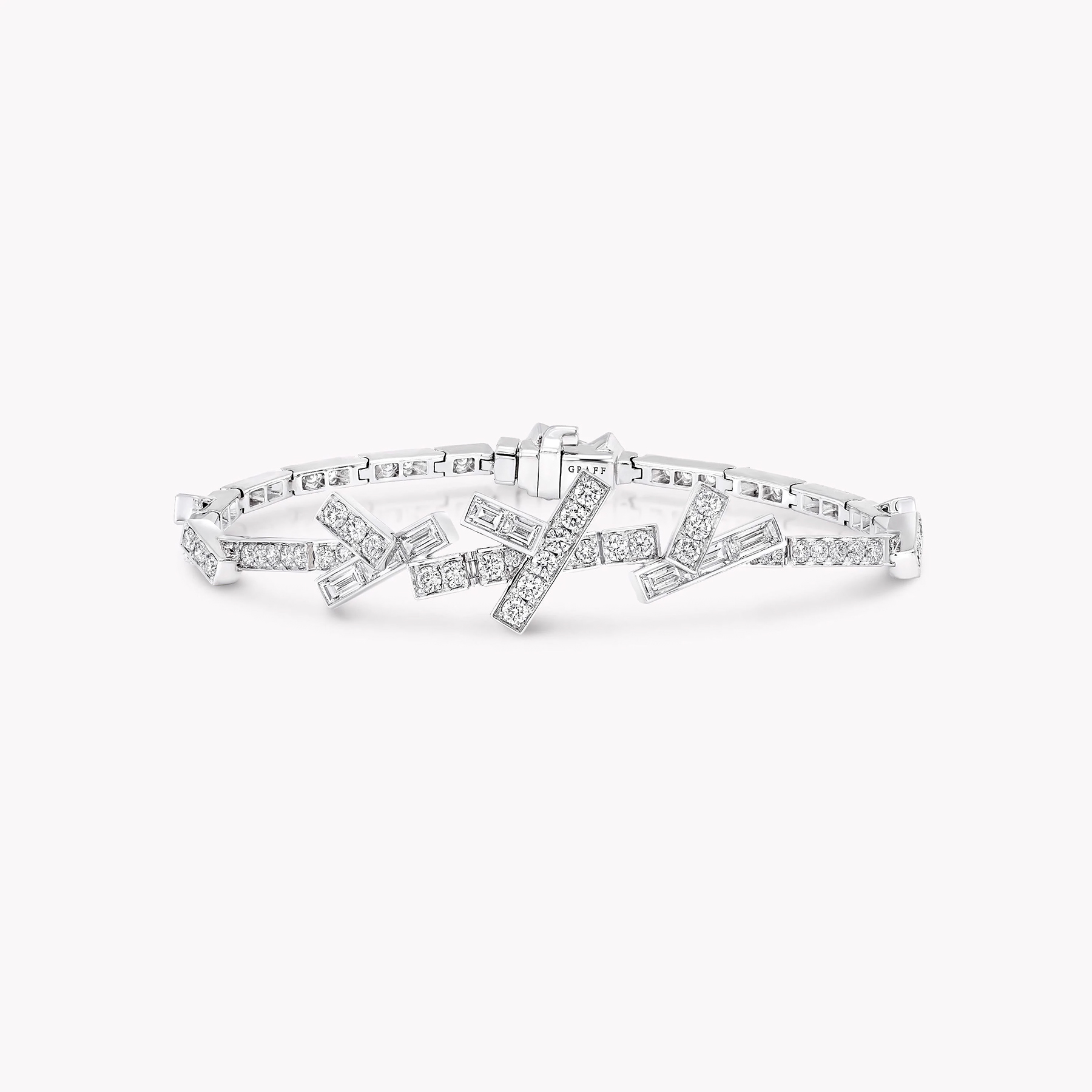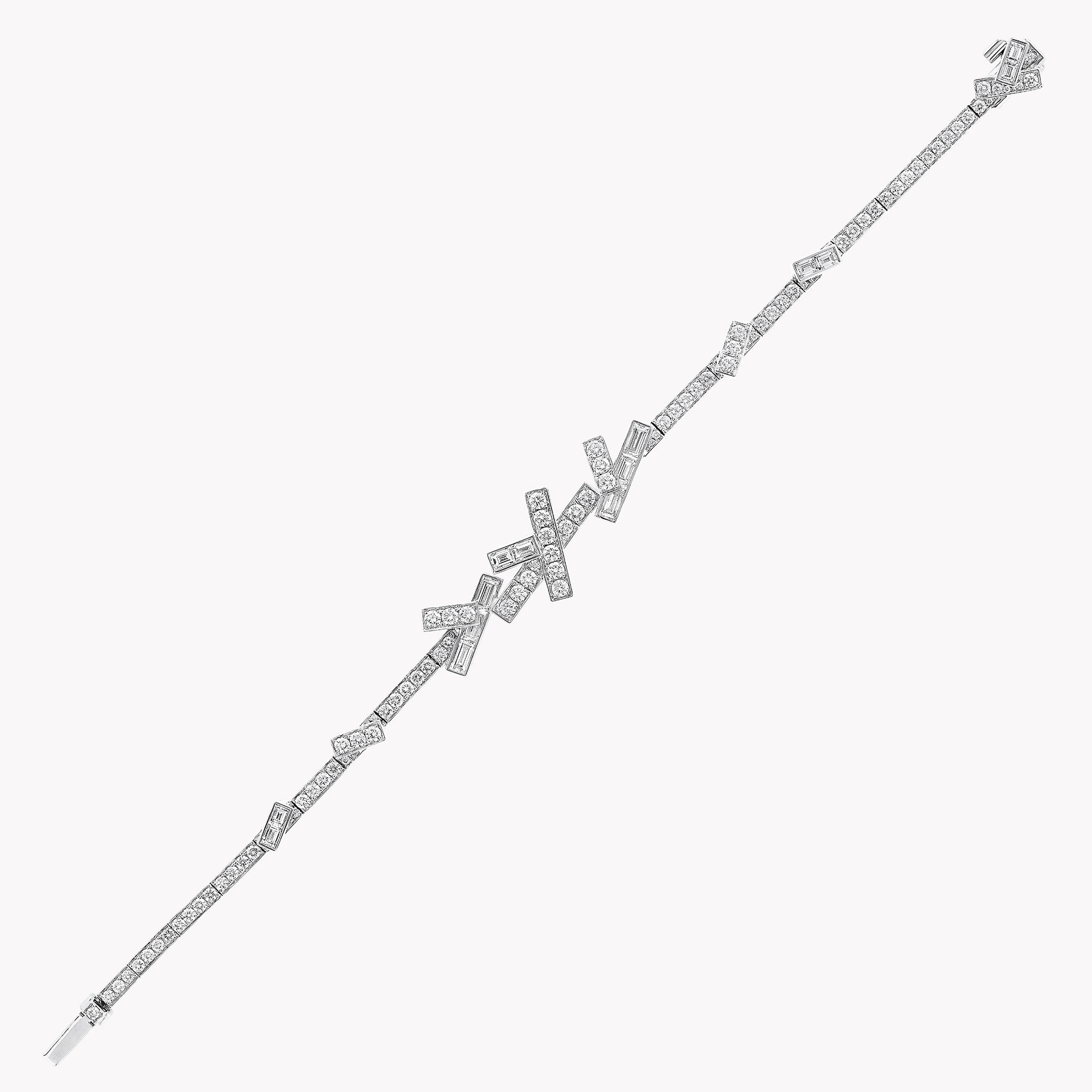Графичный браслет Threads с бриллиантами багетной и паве огранки общим весом около 3,15 карата — это воплощение современного искусства в ювелирной форме, где мастерство Graff превращает геометрию линий в поэзию света.