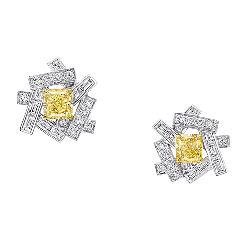 Каждая деталь этих украшений вручную создаётся мастерами лондонской мастерской Graff, где виртуозное ювелирное искусство сочетается с утончённым чувством формы и света. Контраст белых и жёлтых бриллиантов усиливает глубину цвета и игру света, придавая композиции динамику и архитектурную выразительность.