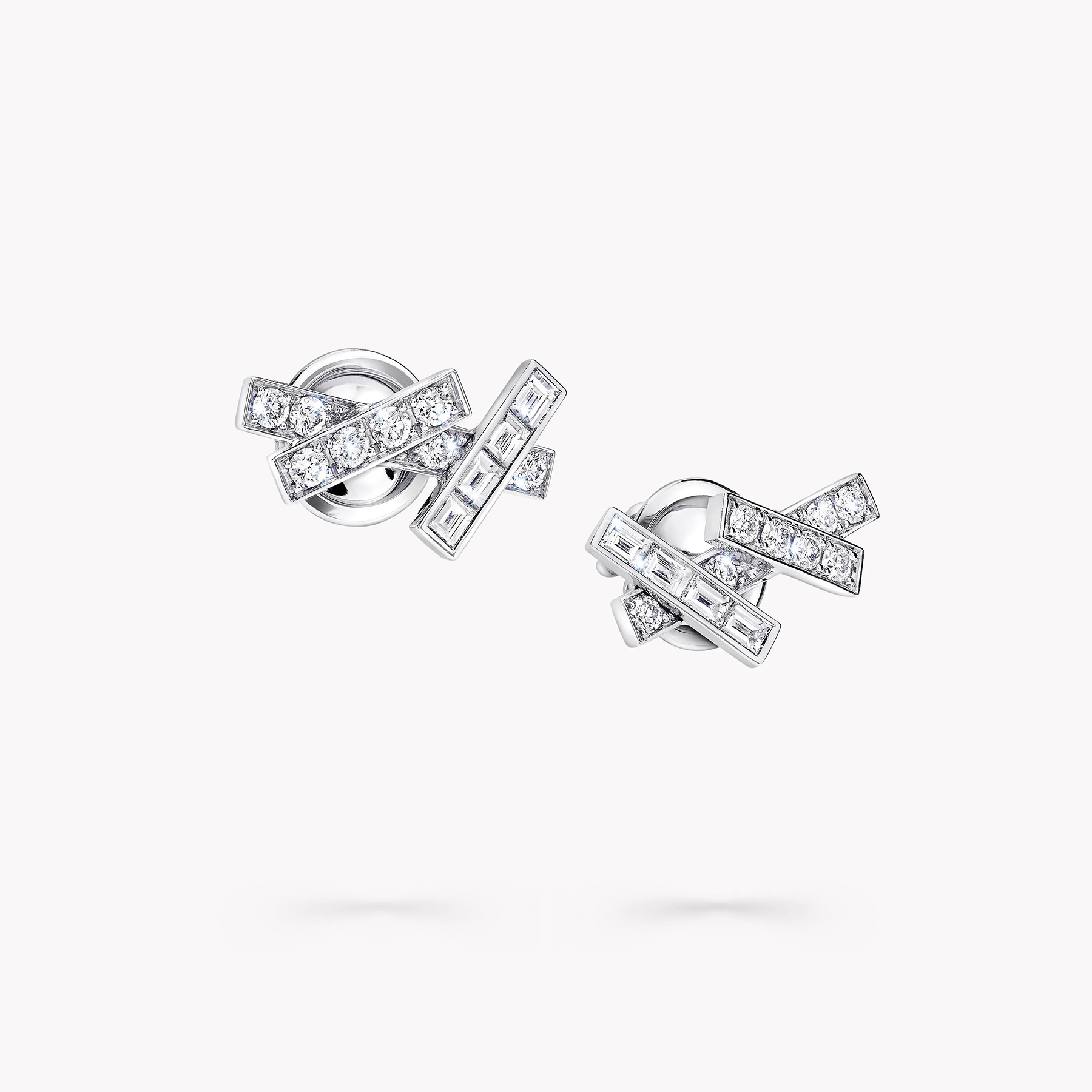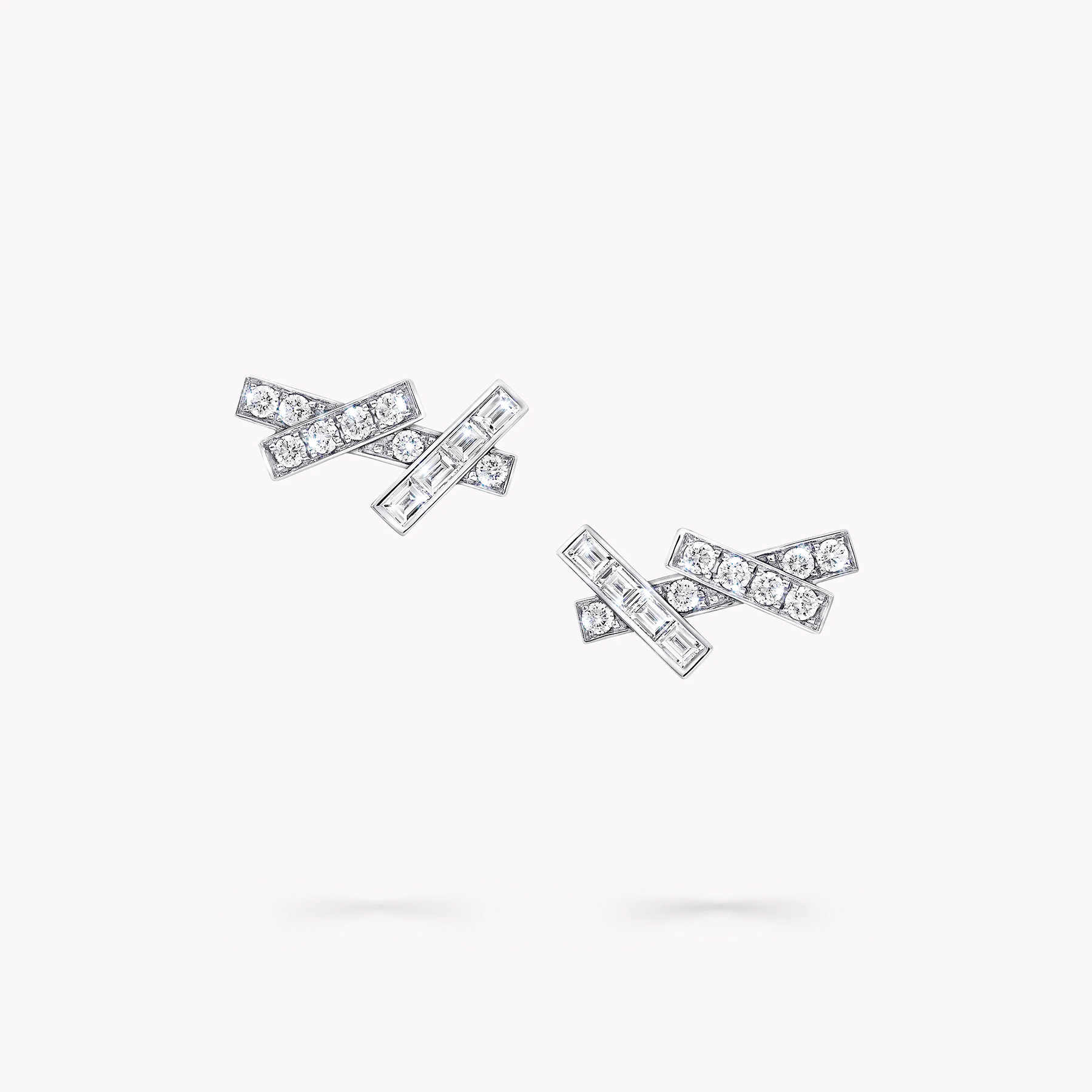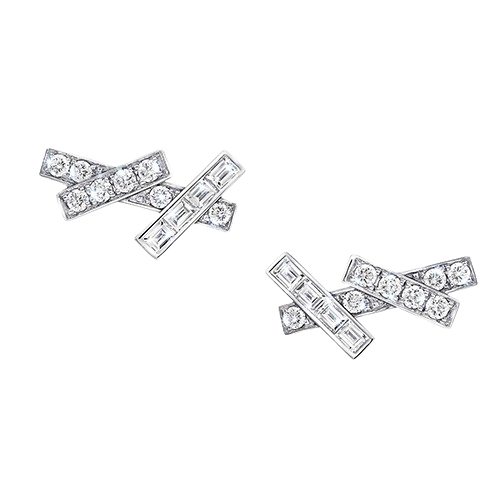 Изысканные и современные, миниатюрные серьги Threads воплощают идею лёгкой геометрической гармонии. Выполненные в форме климберов, они мягко поднимаются вдоль мочки уха, создавая эффект движения и сияния. Перекрещивающиеся ряды бриллиантов багетной огранки и паве образуют воздушную композицию, где каждая грань отражает свет с исключительной чистотой и точностью.