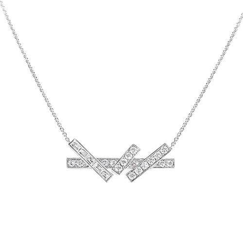 Современный кулон Threads с бриллиантами багетной и паве огранки общим весом около 0,70 карата — это воплощение интеллектуальной красоты, чистоты линий и сияющего мастерства, характерного для ювелирных творений Graff.