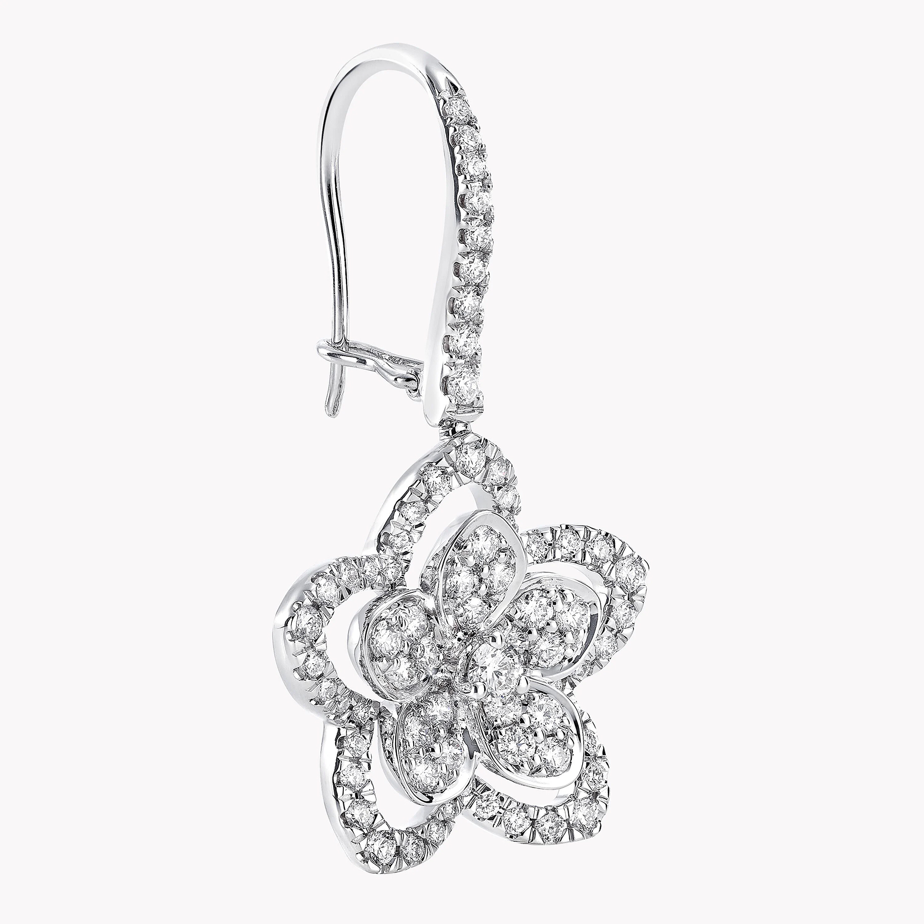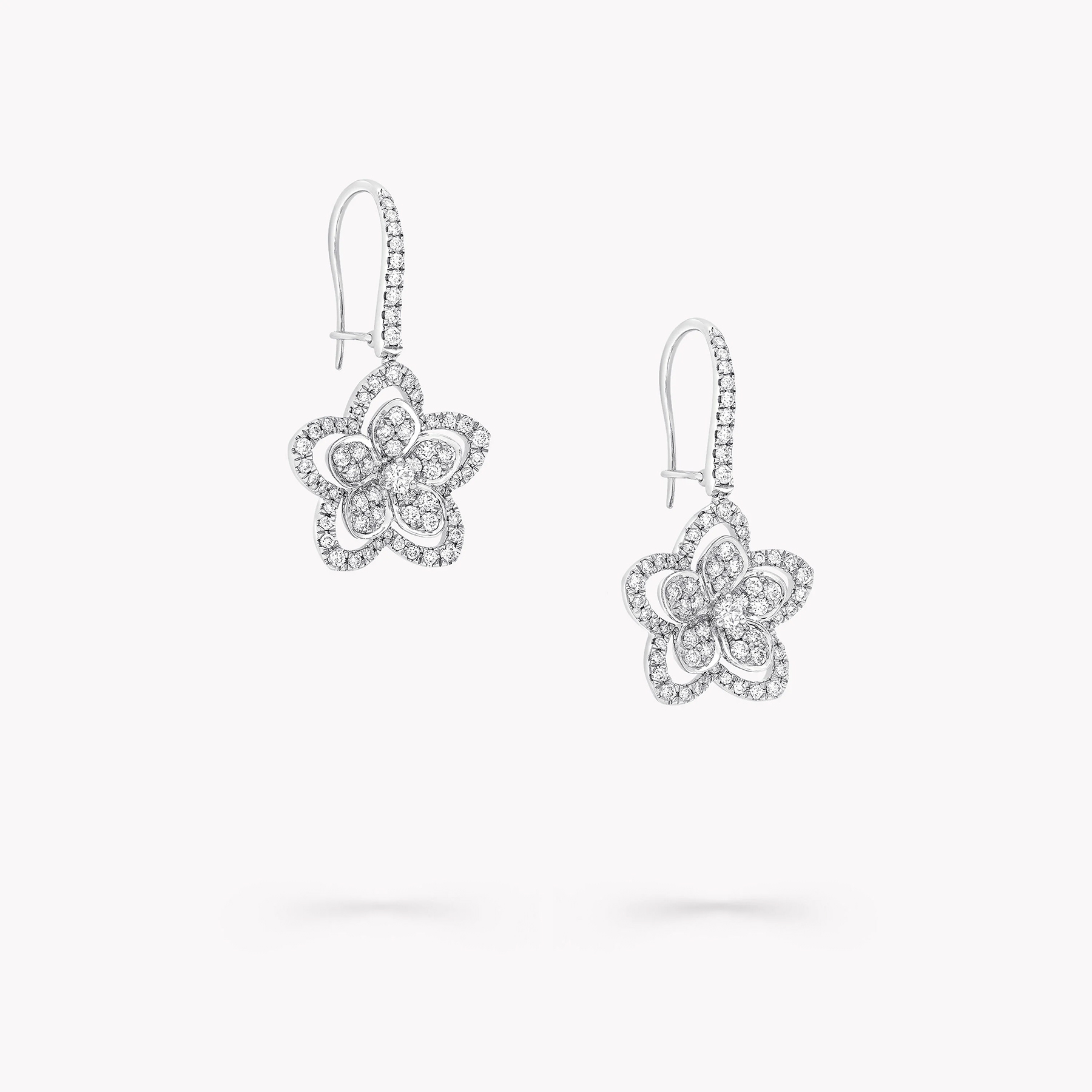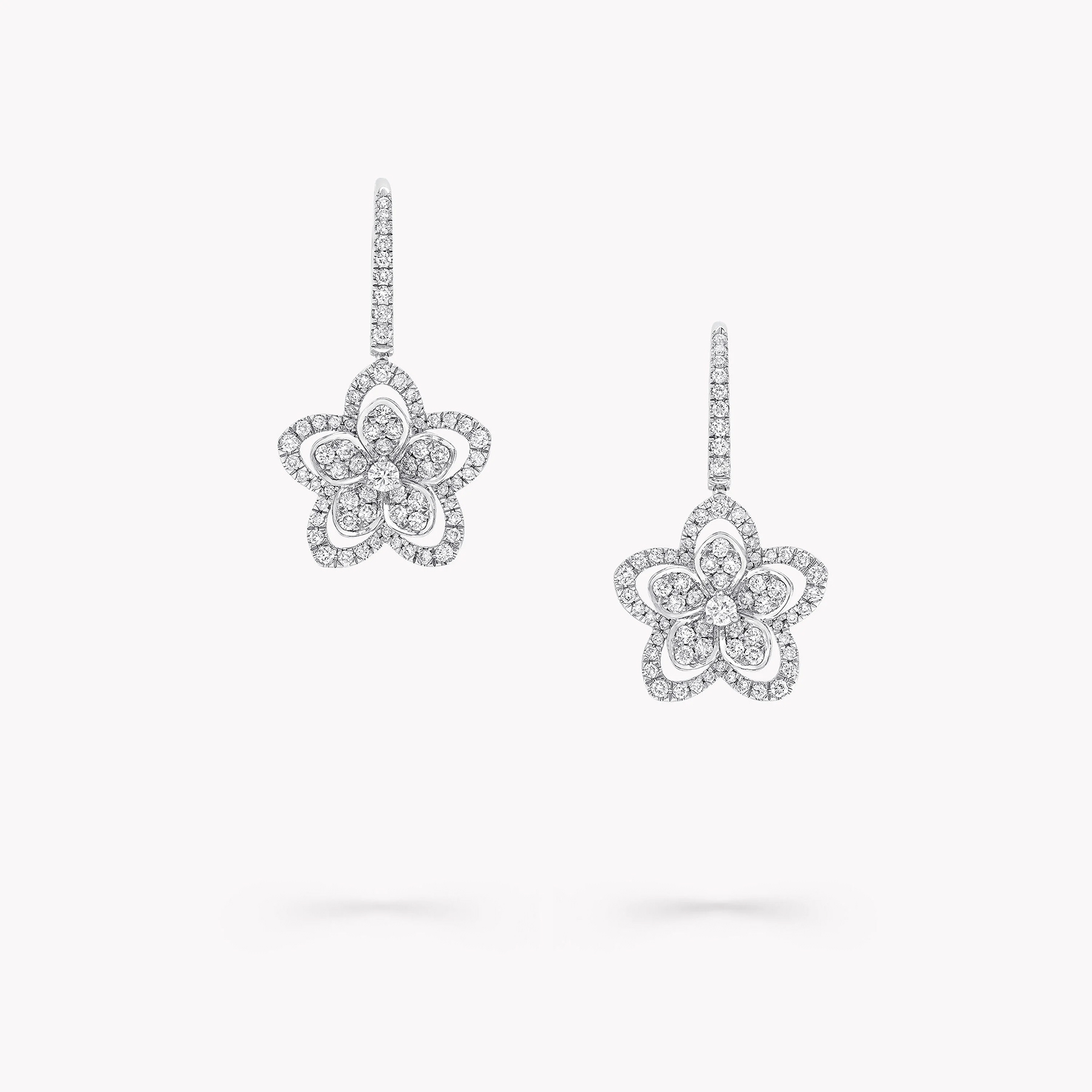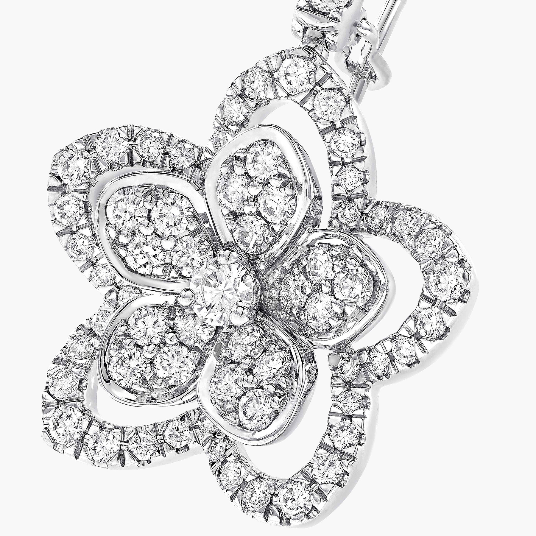 Серьги Wild Flower, подвешенные на изящных крючках, инкрустированных бриллиантами паве, раскрываются нежными, но в то же время выразительными цветочными силуэтами. Каждый лепесток выполнен вручную и уникален, а сияние бриллиантов придаёт украшению «дикую» красоту с современным характером.